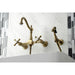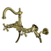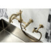 Kingston Heirloom KS1263AXBS - Heritage Two-Handle 3-Hole Wall Mount Bridge Kitchen Faucet with Brass Sprayer, Antique Brass