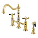 Kingston Heirloom KS1272BEXBS - Essex Two-Handle 4-Hole Deck Mount Bridge Kitchen Faucet with Brass Sprayer, Polished Brass