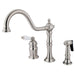 Kingston Heirloom KS1818PLBS - Heritage Single-Handle 3-Hole Widespread Kitchen Faucet with Brass Sprayer, Brushed Nickel