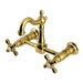 Kingston Heirloom KS2447AX - Heritage Two-Handle 2-Hole Wall Mount Bridge Kitchen Faucet, Brushed Brass