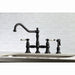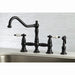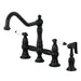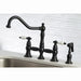 Kingston Heirloom KS3270PLBS - Restoration Two-Handle 4-Hole Deck Mount Bridge Kitchen Faucet with Brass Sprayer, Matte Black