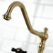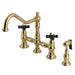 Kingston Heirloom KS3277PKXBS - Duchess Two-Handle 4-Hole Deck Mount Bridge Kitchen Faucet with Brass Sprayer, Brushed Brass