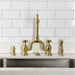 Kingston Heirloom KS7757AXBS - English Country Two-Handle 3-Hole Deck Mount Bridge Kitchen Faucet with Brass Sprayer, Brushed Brass
