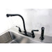 Kingston Water Onyx NB750SP Two-Handle 4-Hole 8" Centerset Kitchen Faucet with Side Sprayer, Black Stainless Steel