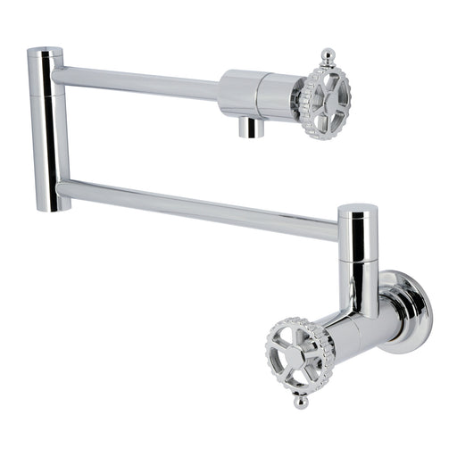Kingston BrassKingston Sona KS4106RKX - Webb Two-Handle 1-Hole Wall Mount Pot Filler Faucet with Knurled Handle, Polished Nickel The exquisite design of this ...