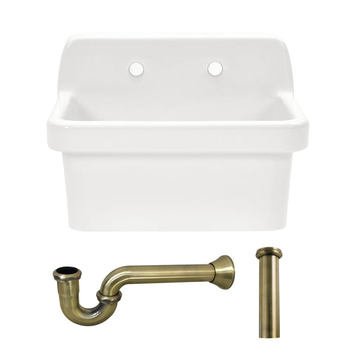 Original price $1,234.85Original price $1,234.85 - Original price $1,234.85Original price $1,234.85Current price $926.14$926.14 - $926.14Current price $926.14| /Kingston Heirloom KGPKWS2419173 - Doriteal 24-Inch Ceramic Single Bowl Wall Mount Kitchen Sink with Strainer, White/Antique Brass