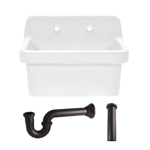 Kingston BrassKingston Heirloom KGPKWS2419175 - Doriteal 24-Inch Ceramic Single Bowl Wall Mount Kitchen Sink with Strainer, White/Oil Rubbed Bronze Transform ...