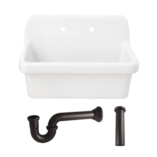 Original price $1,589.85 - Original price $1,589.85Original price $1,589.85$1,589.85$1,589.85 - $1,589.85Current price $1,589.85| /Kingston Heirloom KGPKWS3019185 - Doriteal 30-Inch Ceramic Single Bowl Wall Mount Kitchen Sink with Strainer, White/Oil Rubbed Bronze
