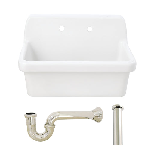 Original price $1,614.85 - Original price $1,614.85Original price $1,614.85$1,614.85$1,614.85 - $1,614.85Current price $1,614.85| /Kingston Heirloom KGPKWS3019186 - Doriteal 30-Inch Ceramic Single Bowl Wall Mount Kitchen Sink with Strainer, White/Polished Nickel