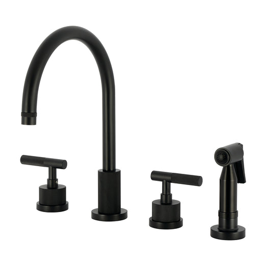 Kingston BrassKingston Sona KS8720KNLBS - Convergent Double-Handle 4-Hole Widespread Kitchen Faucet with Knurled Handle 4-Hole and Brass Sprayer, Matte Black ...