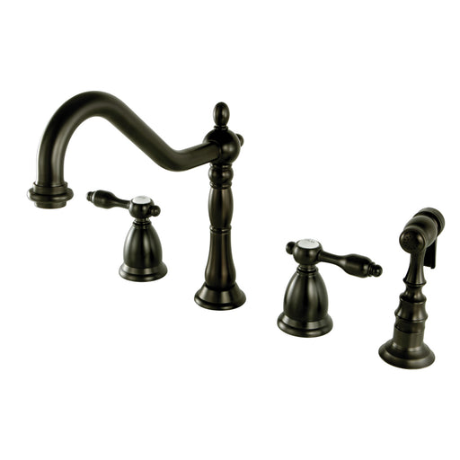Kingston BrassKingston Heirloom KS1795TALBS - Tudor Double-Handle 4-Hole Widespread Kitchen Faucet with Brass Sprayer, Oil Rubbed Bronze Offering a nod toward...