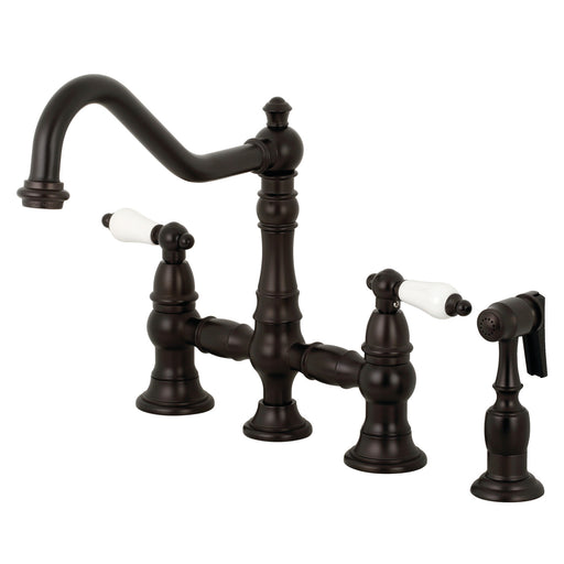 Kingston BrassKingston Heirloom KS3275PLBS - Restoration Two-Handle 4-Hole Deck Mount Bridge Kitchen Faucet with Brass Sprayer, Oil Rubbed Bronze Classical ar...