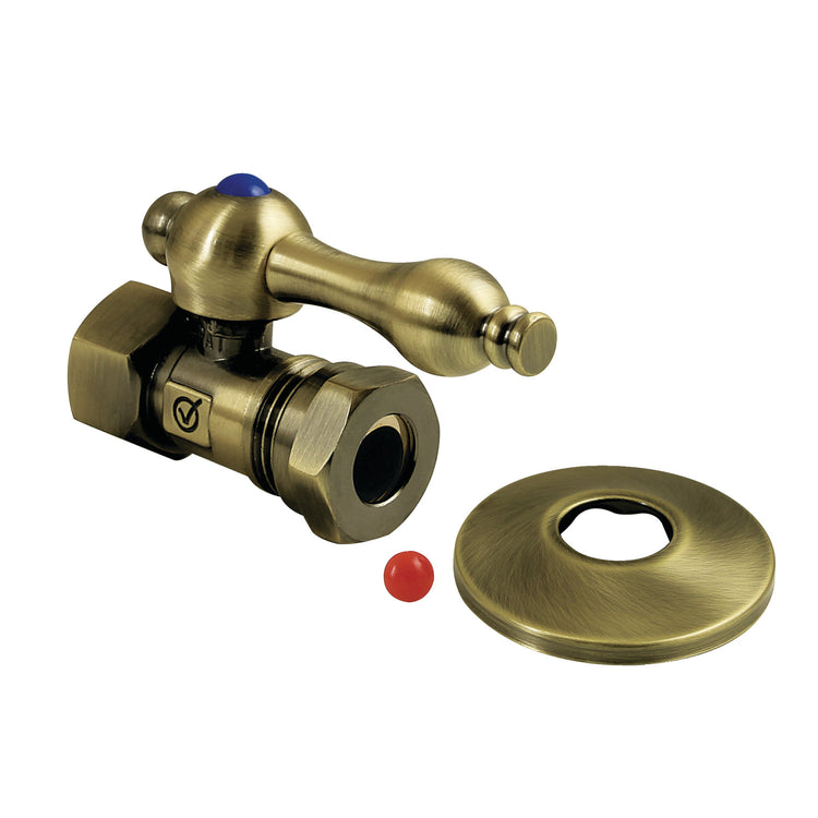 Kingston Heirloom CC44153K - Vintage 1/2-Inch FIP x 1/2-Inch or 7/16-Inch Slip Joint Quarter-Turn Straight Shut-Off Valve with Flange, Antique Brass