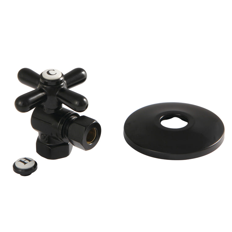 Kingston Heirloom CC33100XK - Vintage 3/8-Inch FIP x 3/8-Inch O.D. Comp Quarter-Turn Angle Shut-Off Valve with Flange, Matte Black
