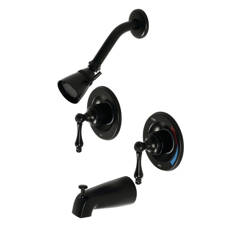 Kingston Heirloom KB660AL - Vintage Double-Handle Pressure Balanced Tub and Shower Faucet, Matte Black