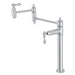 Classical artistry from the late 19th Century to early 20th Century is mirrored beautifully within this faucet's traditional charm. As an excellent tool to quickly, easily, and stylishly fill the pots directly on or next to the stove, eliminate strain on your joints. Deck mount pot fillers are useful gadgets placed directly on the countertop, providing easily accessible water. The foldable swing arms of this pot filler allow for extendable reach of up to 20" of length and provide long-lasting function due to their sturdy brass construction. Additionally, the dual handles prevent unwanted water spillage while enhancing the traditional theme.