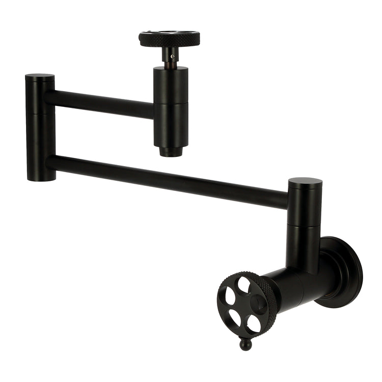 Kingston Sona KS8100RKX - Webb Two-Handle 1-Hole Wall Mount Pot Filler Faucet with Knurled Handle, Matte Black
