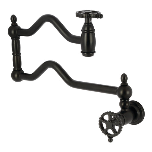 Original price $724.95Original price $724.95 - Original price $724.95Original price $724.95Current price $543.71$543.71 - $543.71Current price $543.71| /Kingston Tulare KS2105RKX - Webb Two-Handle 1-Hole Wall Mount Pot Filler Faucet with Knurled Handle, Oil Rubbed Bronze