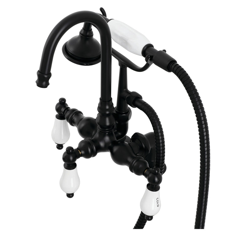 Kingston Heirloom AE17T0 - Aqua Vintage Three-Handle 2-Hole Deck-Mount Clawfoot Tub Faucet with Hand Shower, Matte Black