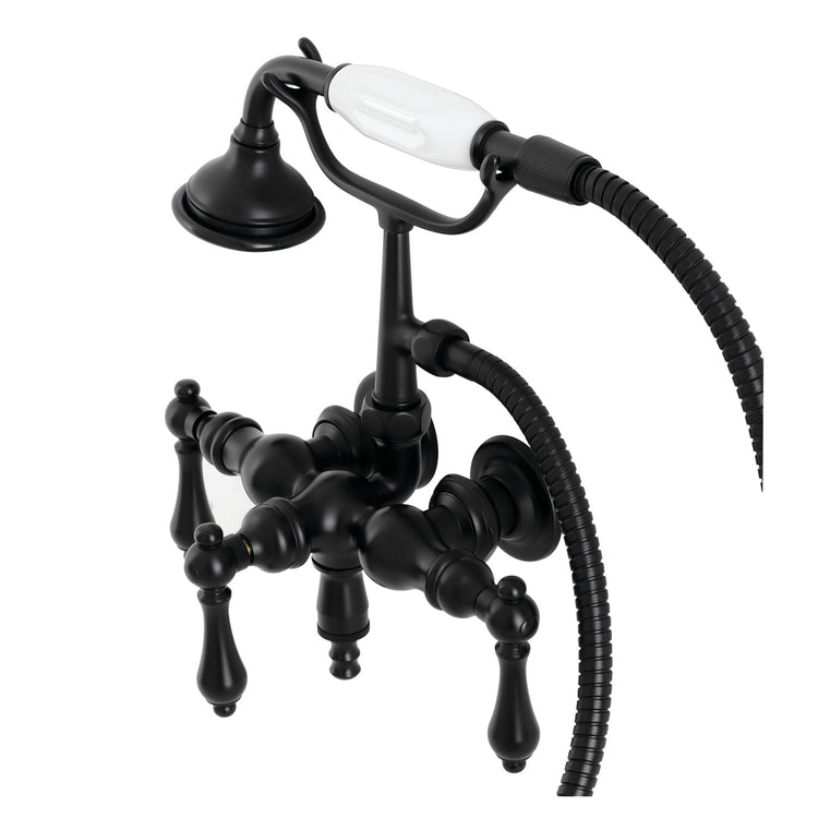 Kingston Heirloom AE19T0 - Aqua Vintage Three-Handle 2-Hole Tub Wall Mount Clawfoot Tub Faucet with Hand Shower, Matte Black