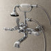 Wall mount clawfoot tub faucets are the perfect fixture to add decorative flair within your bathroom because of their unique architectural elements. With vintage opulence, this will complete your refined bathroom decorum with the help of its premium polished chrome finish and traditionally styled handheld shower. The solid brass construction also makes for a heavy, quality made product.