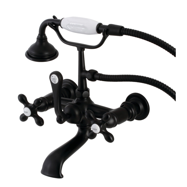 Kingston Heirloom AE557T0 - Aqua Vintage Three-Handle 2-Hole Tub Wall Mount Clawfoot Tub Faucet with Hand Shower, Matte Black