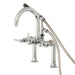 A touch of vintage charm alongside sleek, modern design come together within this deck-mount clawfoot tub faucet. As the perfect complement to your tub, this will complete your refined bathroom decorum with the help of its premium, glistening polished chrome finish and telephone style hand shower. The solid brass construction also makes for a heavy, quality made product.