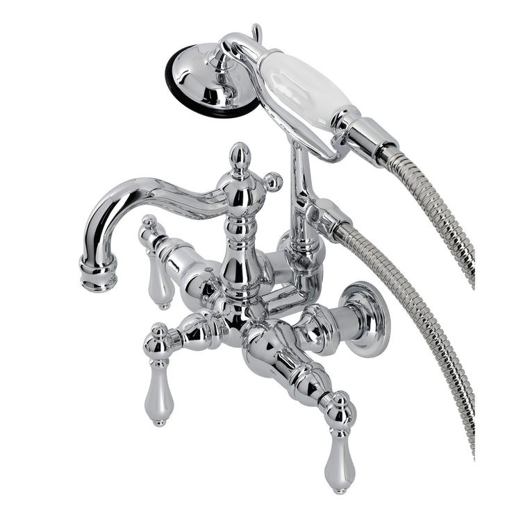 Kingston Heirloom CA1008T1 - Heritage Three-Handle 2-Hole Tub Wall Mount Clawfoot Tub Faucet with Hand Shower, Polished Chrome