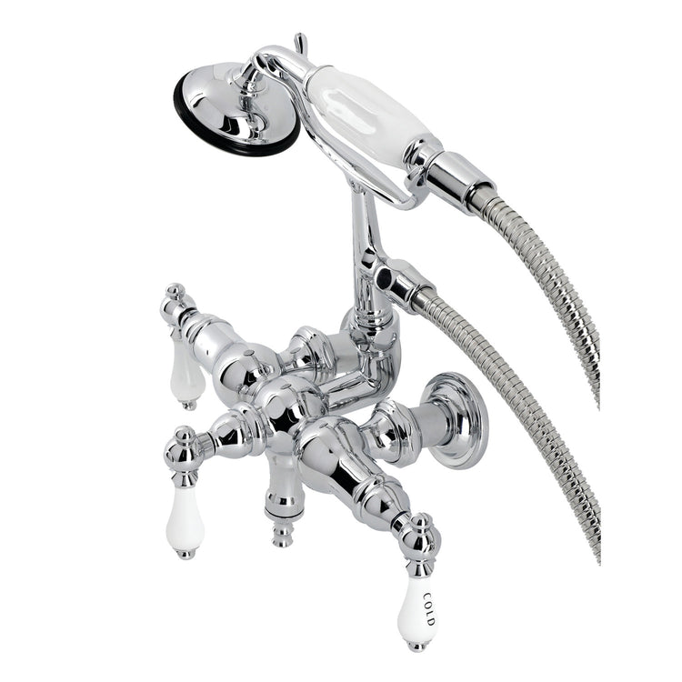 Kingston Heirloom CA22T1 - Vintage Three-Handle 2-Hole Tub Wall Mount Clawfoot Tub Faucet with Hand Shower, Polished Chrome