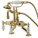 Kingston Heirloom CC2009T2 - Vintage Three-Handle 2-Hole Deck-Mount Clawfoot Tub Faucet with Hand Shower, Polished Brass