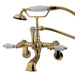 Kingston Heirloom CC55T2 - Vintage Three-Handle 2-Hole Tub Wall Mount Clawfoot Tub Faucet with Hand Shower, Polished Brass