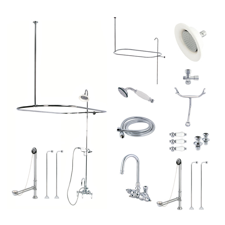 To wrap up your traditionally styled home decorum, incorporate the refinement of one of Kingston Brass' clawfoot tub faucet packages for an all-inclusive and reliable complement to your clawfoot tub. A top-to-bottom beautiful styling is achieved with these coordinated pieces from the shower enclosure down to the drain. All included products are made from sturdy materials and a premium finish for a reliable and long lasting set to last for years to come. Includes faucet, water supply lines, angle stop valves, drain, and shower enclosure.