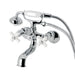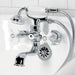 Wall mount clawfoot tub faucets are the perfect fixture to add decorative flair within your bathroom because of their unique architectural elements. With vintage opulence, this will complete your refined bathroom decorum with the help of its premium polished chrome finish and traditionally styled handheld shower. The solid brass construction also makes for a heavy, quality made product. Hand shower with porcelain handle and 59-inch hose.