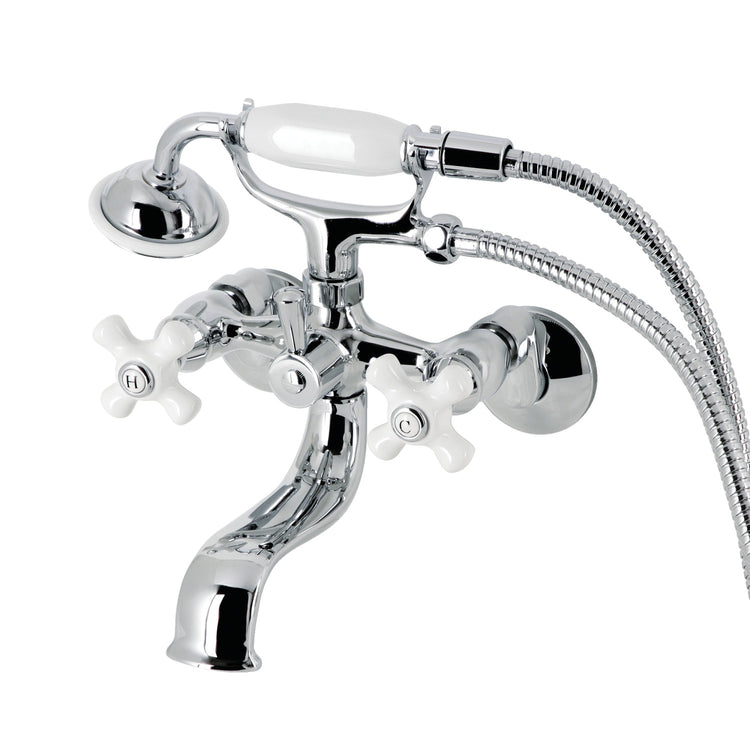 Kingston Heirloom KS225PXC - Kingston Three-Handle 2-Hole Tub Wall Mount Clawfoot Tub Faucet with Hand Shower, Polished Chrome