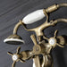Wall mount clawfoot tub faucets are the perfect fixture to add decorative flair within your bathroom because of their unique architectural elements. With vintage opulence, this will complete your refined bathroom decorum with the help of its premium antique brass finish and traditionally styled handheld shower. The solid brass construction also makes for a heavy, quality made product. Hand shower with porcelain handle and 59-inch hose.