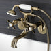 Kingston Heirloom KS246AB - Essex Three-Handle 2-Hole Wall Mount Clawfoot Tub Faucet with Handshower, Antique Brass