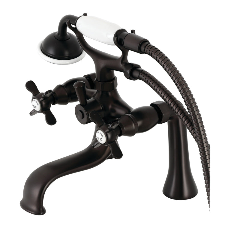 Kingston Heirloom KS248ORB - Essex Three-Handle 2-Hole Deck-Mount Clawfoot Tub Faucet with Hand Shower, Oil Rubbed Bronze