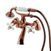 Vintage opulence finds itself within this deck-mount clawfoot tub faucet. As the perfect complement to your tub, this will complete your refined bathroom decorum with the help of its premium, glistening antique copper finish and telephone style hand shower. The solid brass construction also makes for a heavy, quality made product. Hand shower with porcelain handle and 59-inch hose.