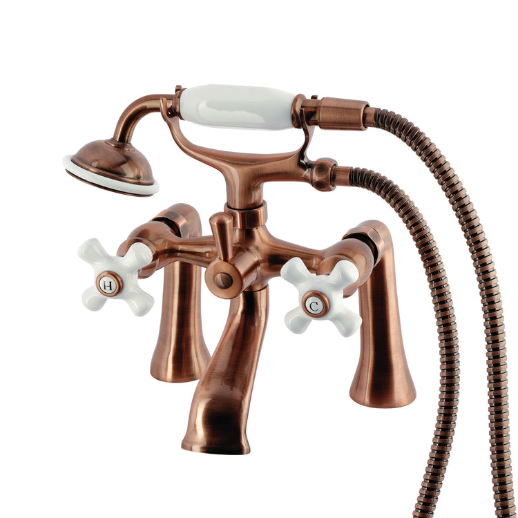 Kingston Heirloom KS268PXAC - Kingston Three-Handle 2-Hole Deck-Mount Clawfoot Tub Faucet with Hand Shower, Antique Copper