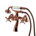 Vintage opulence finds itself within this deck-mount clawfoot tub faucet. As the perfect complement to your tub, this will complete your refined bathroom decorum with the help of its premium, glistening antique copper finish and telephone style hand shower. The solid brass construction also makes for a heavy, quality made product.