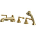 Kingston Tulare KS43025HL - Metropolitan Three-Handle 5-Hole Deck Mount Roman Tub Faucet with Hand Shower, Polished Brass