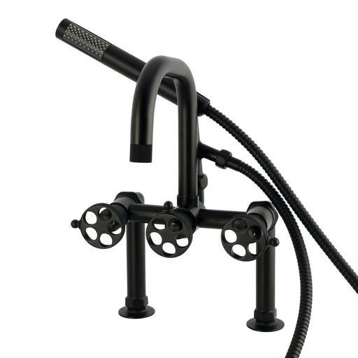 Original price $1,209.95Original price $1,209.95 - Original price $1,209.95Original price $1,209.95Current price $907.46$907.46 - $907.46Current price $907.46| /Kingston Sona AE6000RKX - Webb Three-Handle 2-Hole Deck-Mount Clawfoot Tub Faucet with Knurled Handle and Hand Shower, Matte Black