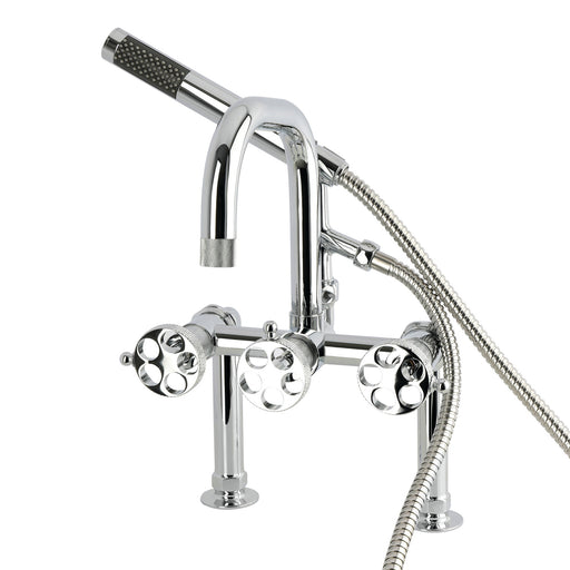 Original price $1,024.95Original price $1,024.95 - Original price $1,024.95Original price $1,024.95Current price $768.71$768.71 - $768.71Current price $768.71| /Kingston Sona AE6001RKX - Webb Three-Handle 2-Hole Deck-Mount Clawfoot Tub Faucet with Knurled Handle and Hand Shower, Polished Chrome