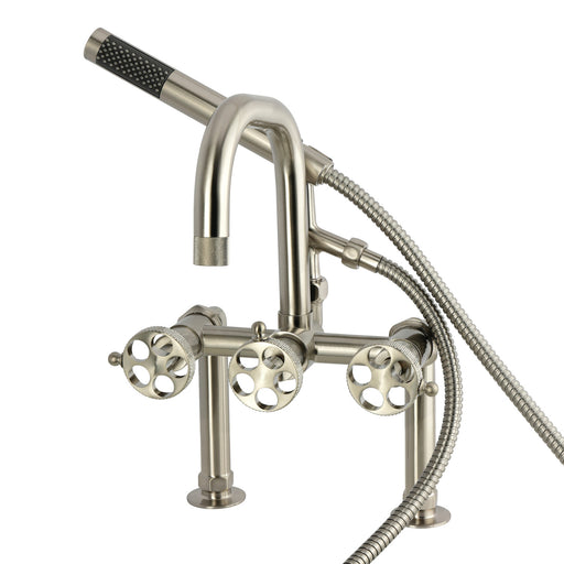 Kingston BrassKingston Sona AE6008RKX - Webb Three-Handle 2-Hole Deck-Mount Clawfoot Tub Faucet with Knurled Handle and Hand Shower, Brushed Nickel Discover t...