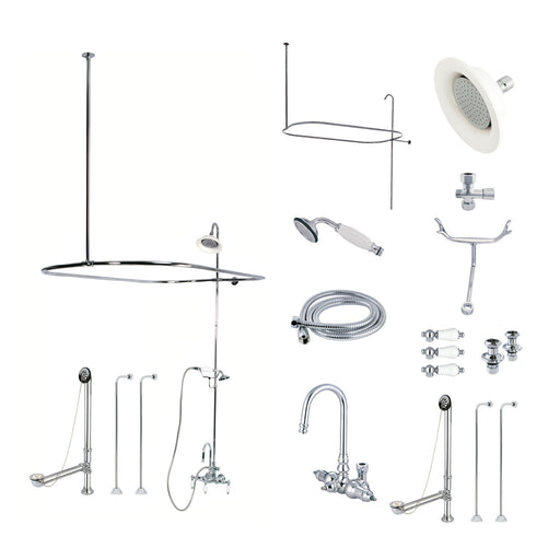 Original price $2,069.35 - Original price $2,069.35Original price $2,069.35$2,069.35$2,069.35 - $2,069.35Current price $2,069.35| /Kingston Heirloom CCK2141PL - Vintage Three-Handle 2-Hole Tub Wall Mount Clawfoot Tub Faucet Package with Shower Enclosure and Hand Shower, Polished Chrome
