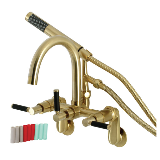 Kingston BrassKingston Sona AE8157DKL - Kaiser Three-Handle 2-Hole Tub Wall Mount Clawfoot Tub Faucet with Hand Shower, Brushed Brass Wall mount clawfoot tub ...