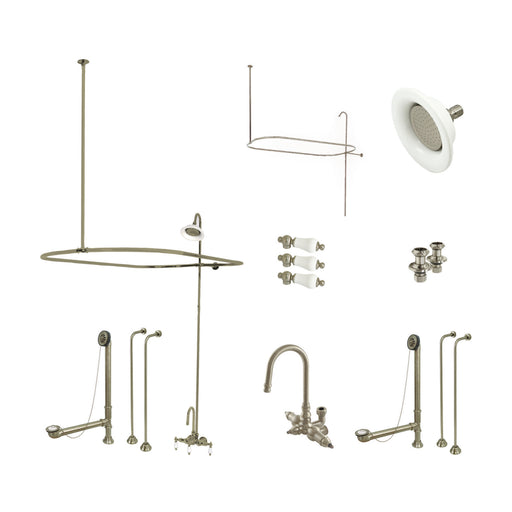 Original price $3,059.35Original price $3,059.35 - Original price $3,059.35Original price $3,059.35Current price $2,294.51$2,294.51 - $2,294.51Current price $2,294.51| /Kingston Heirloom CCK3148AL - Vintage Three-Handle 2-Hole Tub Wall Mount Clawfoot Tub Faucet Package with Shower Enclosure and Hand Shower, Brushed Nickel