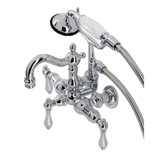 Kingston BrassKingston Heirloom AE302T1 - Aqua Vintage Three-Handle 2-Hole Tub Wall Mount Clawfoot Tub Faucet with Hand Shower, Polished Chrome Wall mount cla...