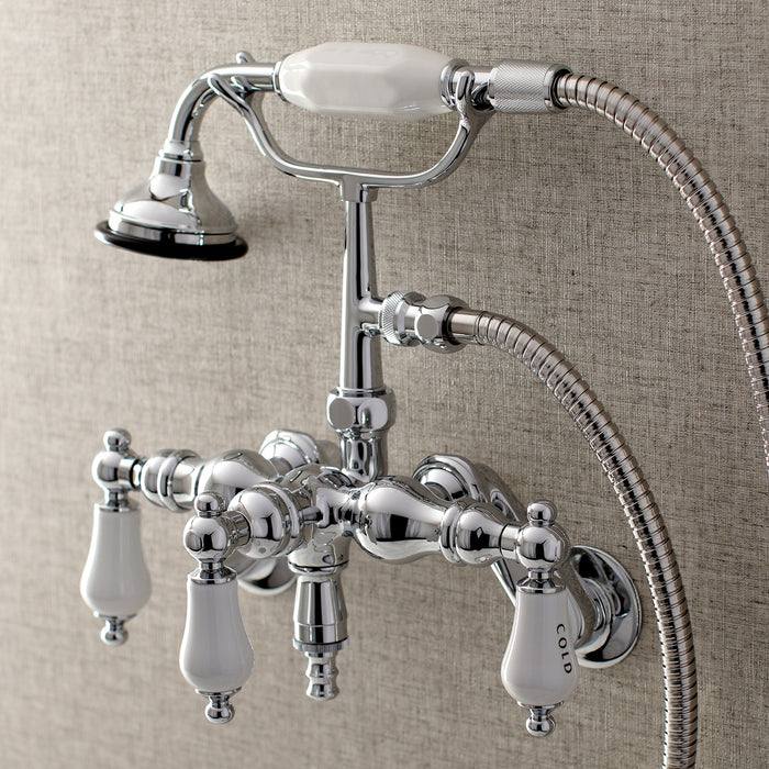 Kingston Heirloom AE424T1 - Vintage Three-Handle 2-Hole Tub Wall Mount Clawfoot Tub Faucet with Hand Shower, Polished Chrome