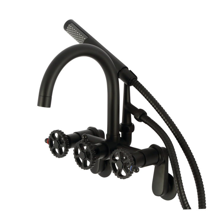 Fuller AE8150CG Three-Handle 2-Hole Tub Wall Mount Clawfoot Tub Faucet with Hand Shower, Matte Black